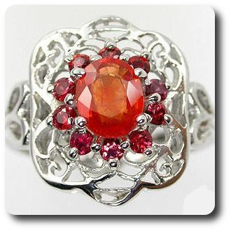• Gemstones  1 x 6x5 mm Natural Orange Sapphire + 10x1,8 mm Red Sapphire