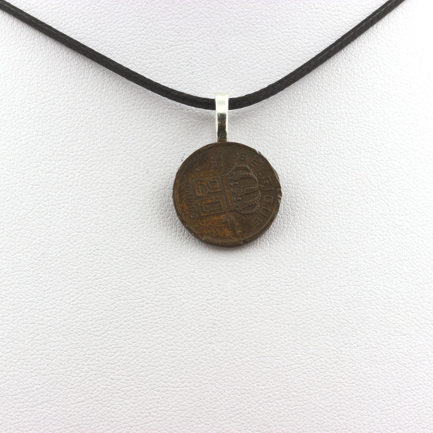 Authentic Coin Pendant Belgium 20 centimes - Minor type in French + black leather cord (length 45 to 50 cm).