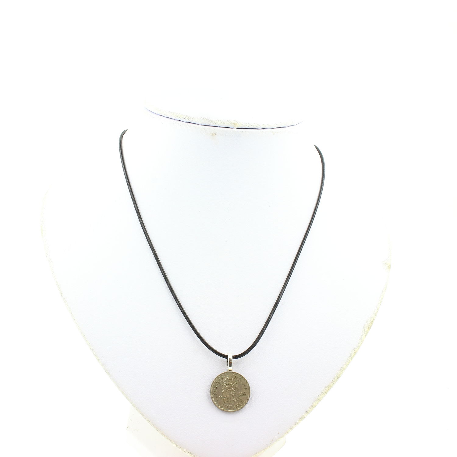 Authentic Coin Pendant United Kingdom 1 George VI shilling + black leather cord (length 45 to 50 cm).