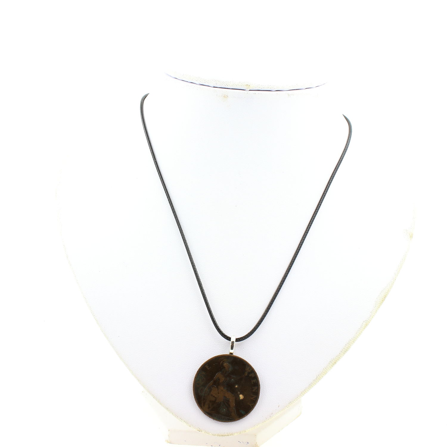 Authentic Coin Pendant United Kingdom 1 "old head" Victoria penny + black leather cord (length 45 to 50 cm).
