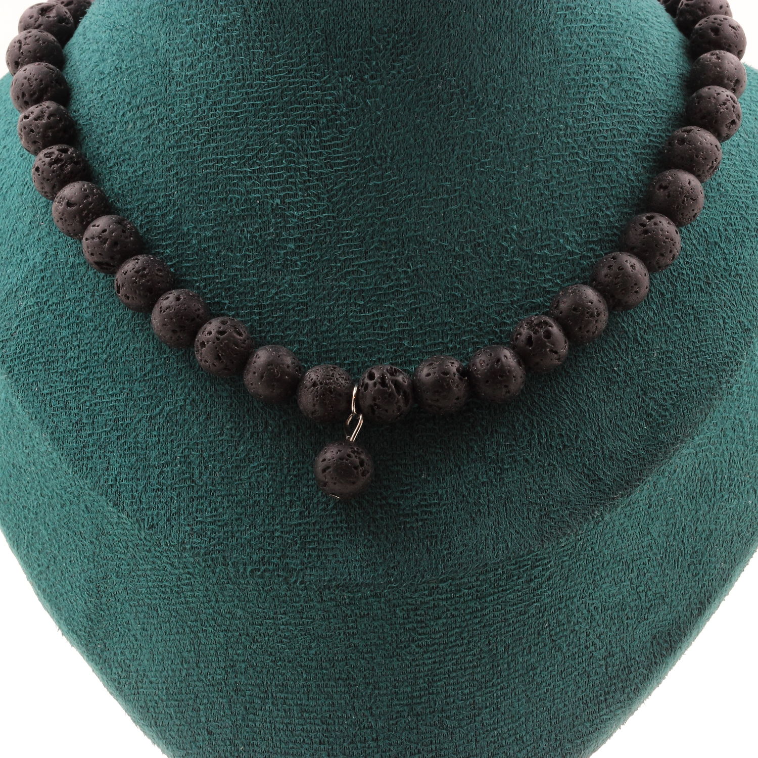 Necklace with Lava beads 8 mm + 1 Lava bead 8 mm. Stainless steel chain