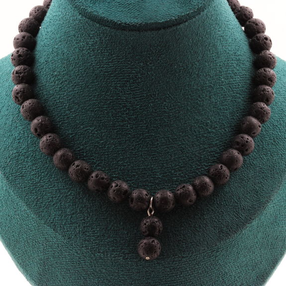 Necklace with Lava beads 8 mm + 2 Lava beads 8 mm, stainless steel chain, length 45 cm. We can make it to your length on request (price varies depending on the length of the necklace). Made in France in our A Bijoux workshop.
