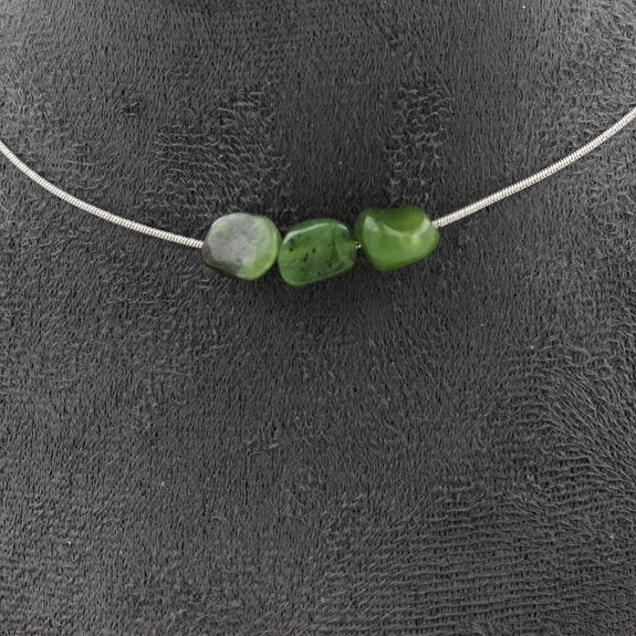 Nephrite Jade from Siberia (Russia) 3 beads necklace, stainless steel chain length 45 cm. We can make it to your length on request. Made in France in our A Bijoux workshop. Delivered in a box pouch. Necklace for women, men, children. Discover more than 1000 models of necklaces made by the A Bijoux brand with new arrivals every day.