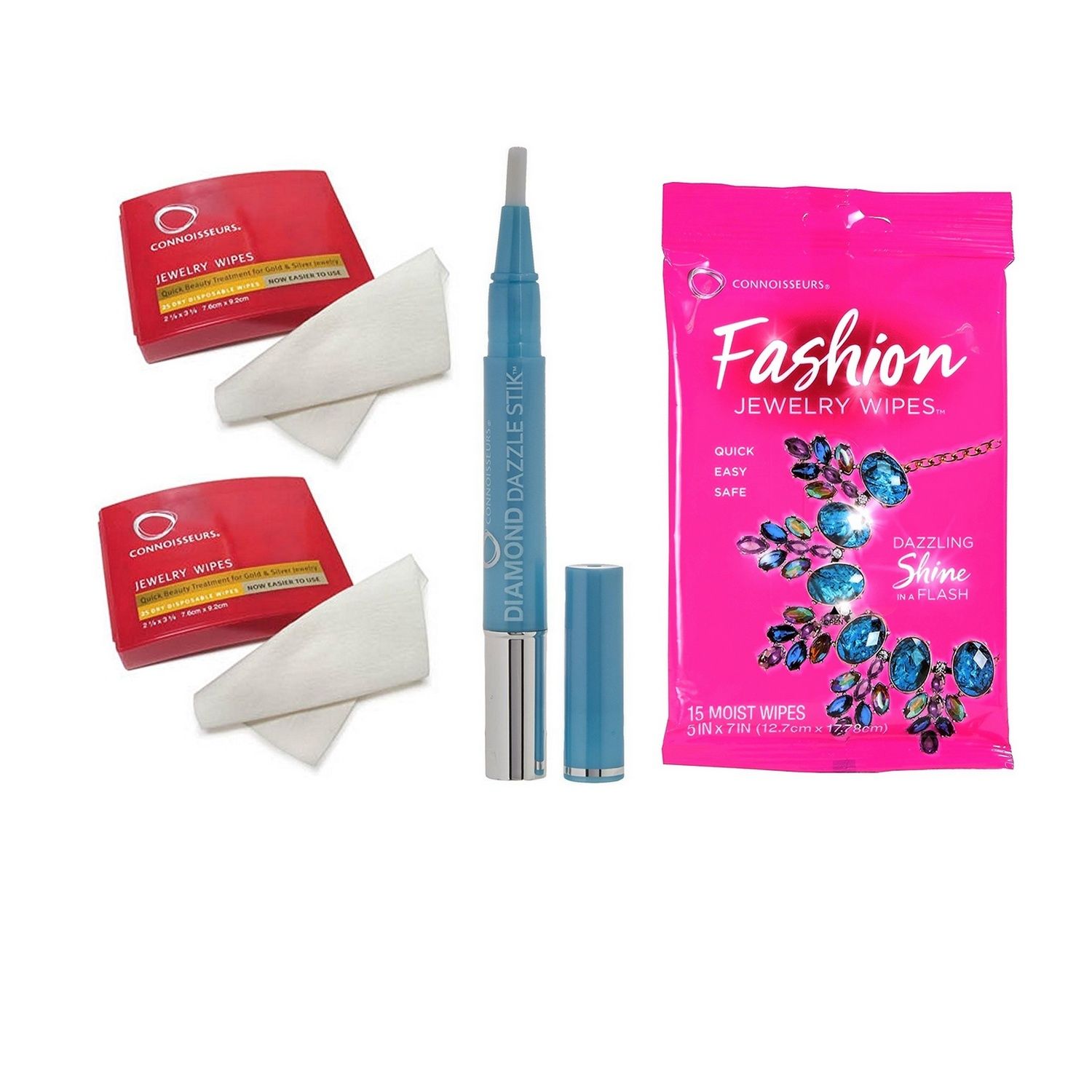Fashion Jewelry Cleaning Wipes, 15 Wipes, Connoisseurs Fashion Wipes + Diamond Stick for diamonds, gemstones, Diamond Dazzle Stick, Connoisseurs + Gold and Silver Jewelry Cleaning Wipes, 50 Wipes, Connoisseurs.
