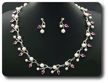 Pearl & Pink Sapphire Necklace + Earrings