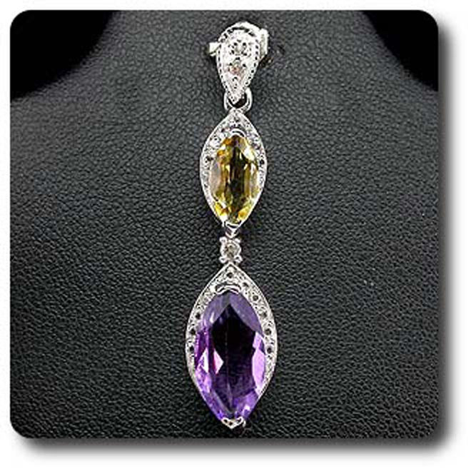 PENDENTIF AMETHYSTE CITRINE & TOPAZE BLANCHE