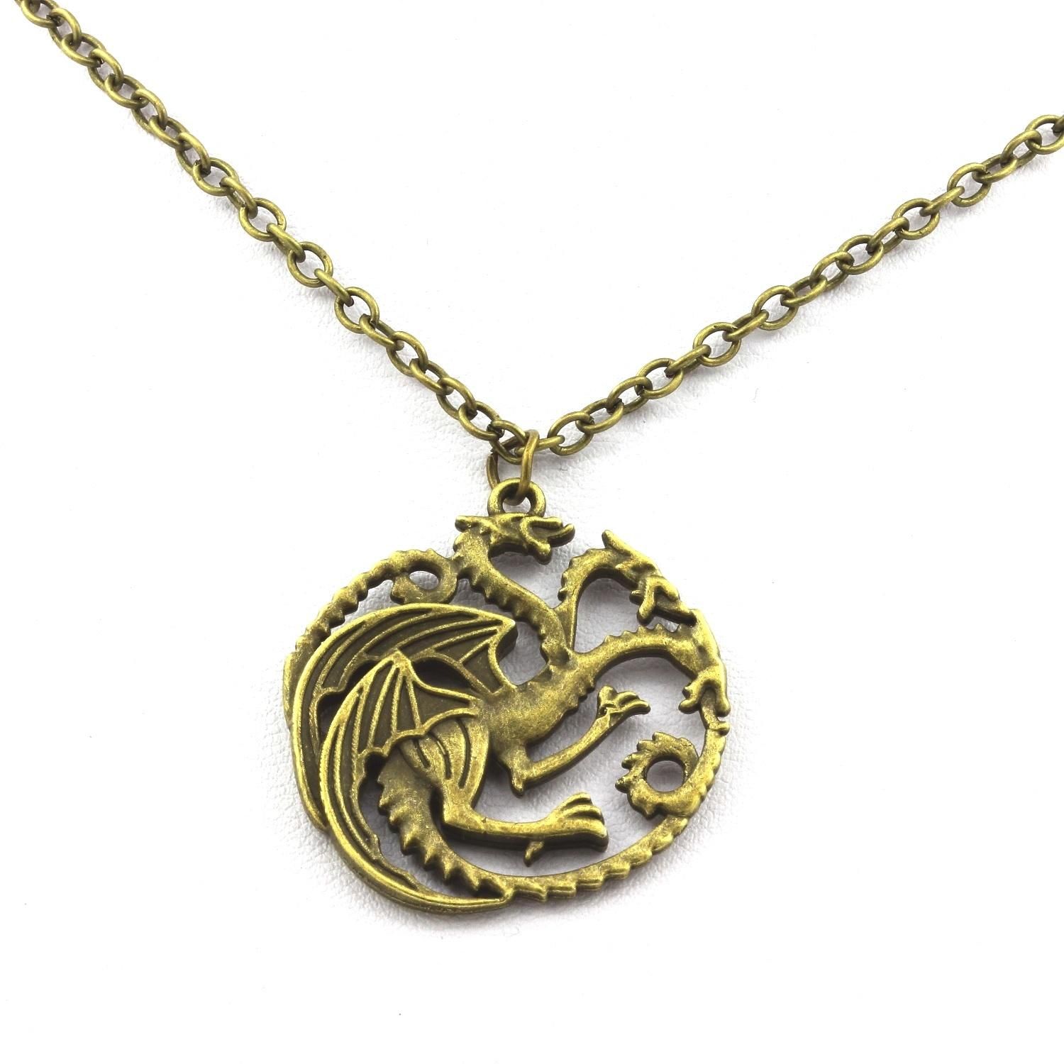 Pendentif Collier Game Of Thrones Targaryen Sigil Dragon métal couleur bronze + chaine ( longueur 50 cm ).