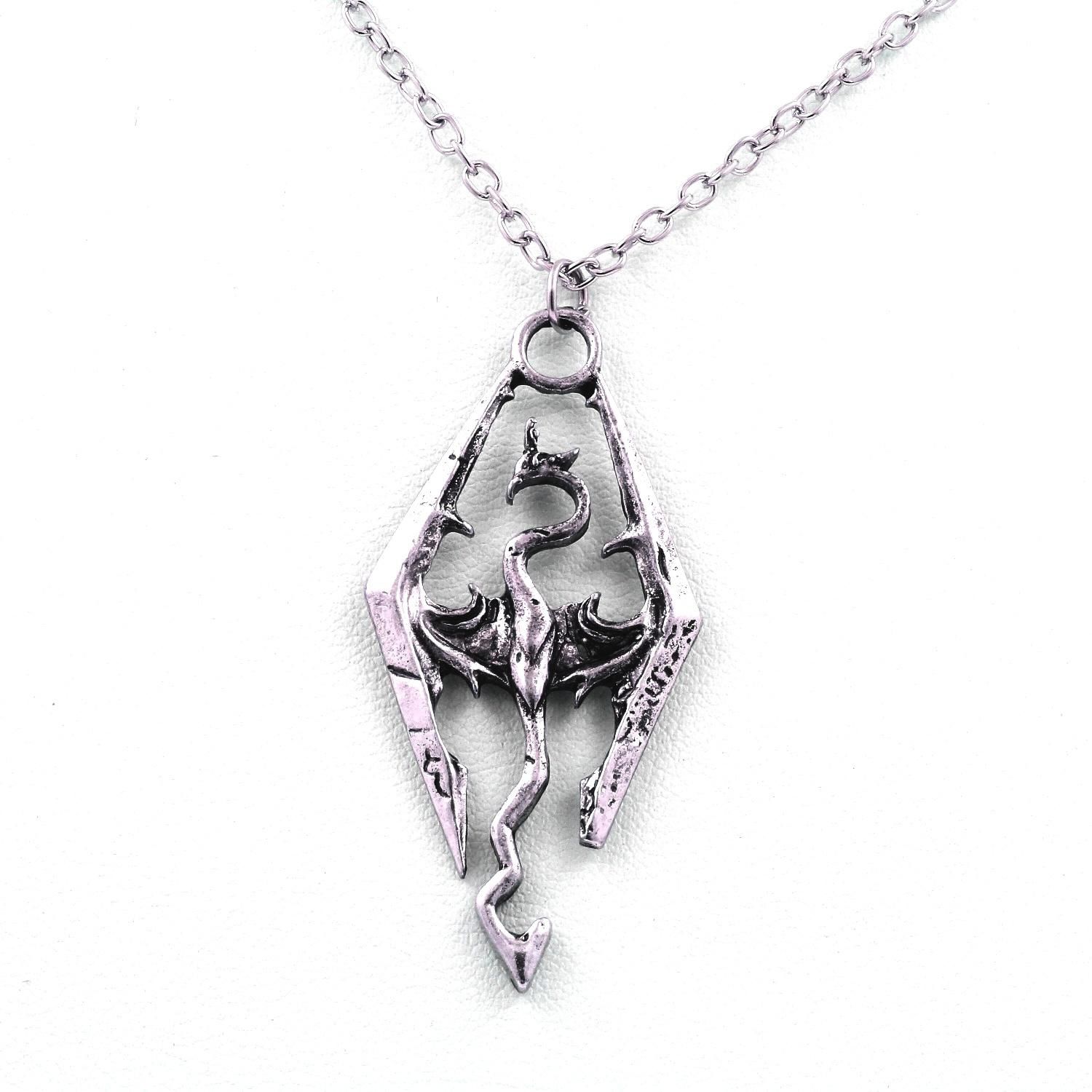 Pendentif Collier The Elder Scrolls Dragon Skyrim métal argenté + chaine ( longueur 50 cm ).