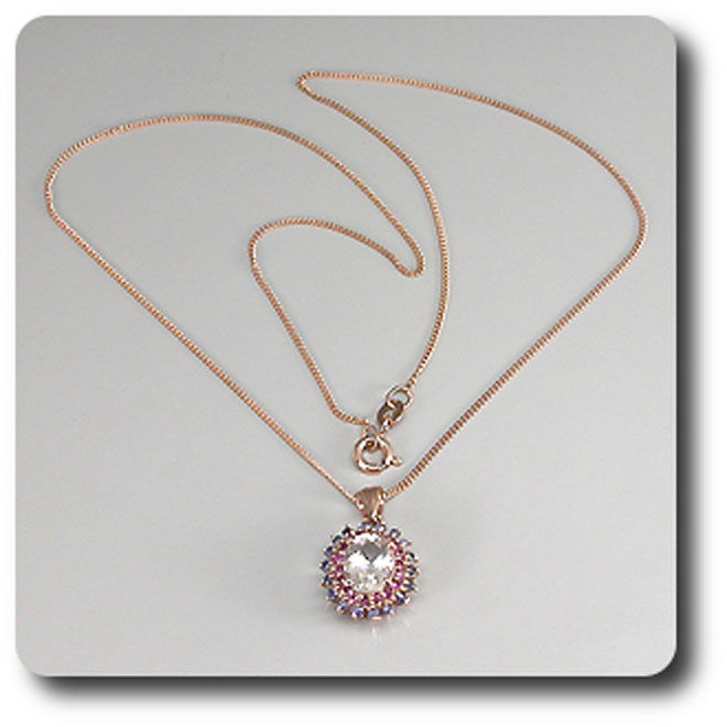 PENDENTIF MORGANITE SAPHIR RUBIS + CHAINE