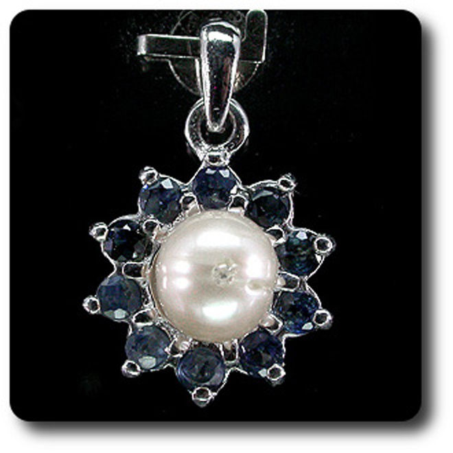 PENDENTIF SAPHIR DIAMANT & PERLE