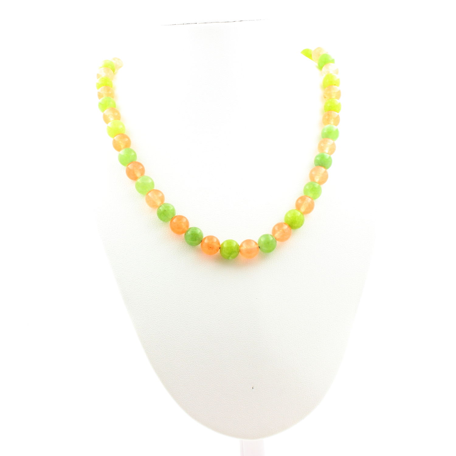 Peridot + Orange Chalcedony 8 mm beaded necklace, stainless steel chain length 45 cm. We can make it to your length on request (price varies depending on the length of the necklace). Made in France in our A Bijoux workshop. Delivered in a box pouch. Necklace for women, men, children. Discover more than 1000 models of necklaces made by the A Bijoux brand with new arrivals every day.