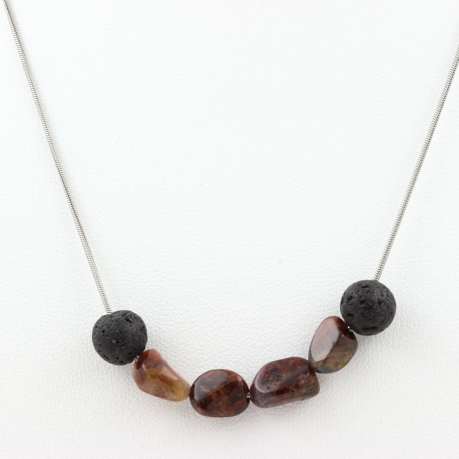 Pietersite from USA + Lava 8 mm beaded necklace Stainless steel chain