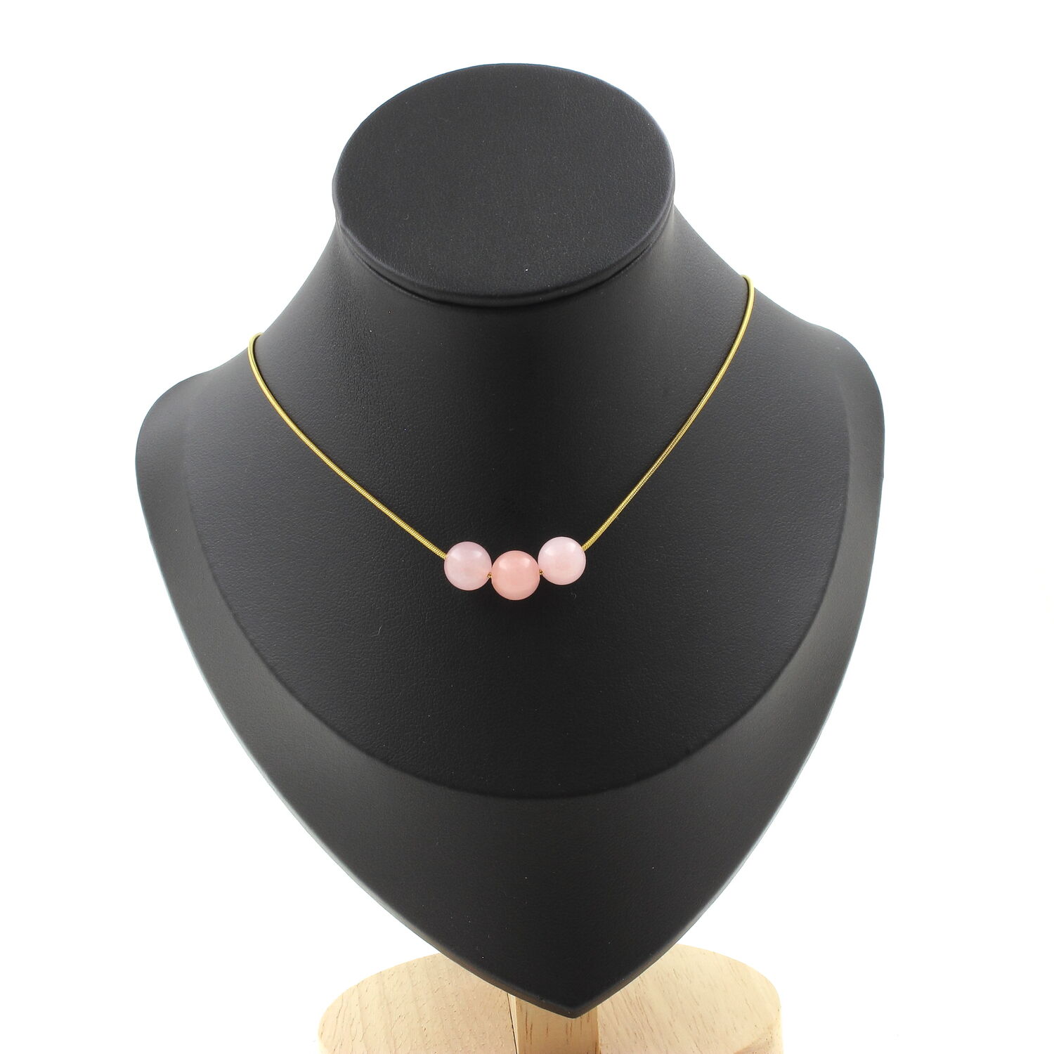 Pink opal 8 mm 3 beads necklace, golden stainless steel chain length 45 cm. We can make it to your length on request. Made in France in our A Bijoux workshop. Delivered in a box pouch. Necklace for women, men, children. Discover more than 1000 models of necklaces made by the A Bijoux brand with new arrivals every day.
