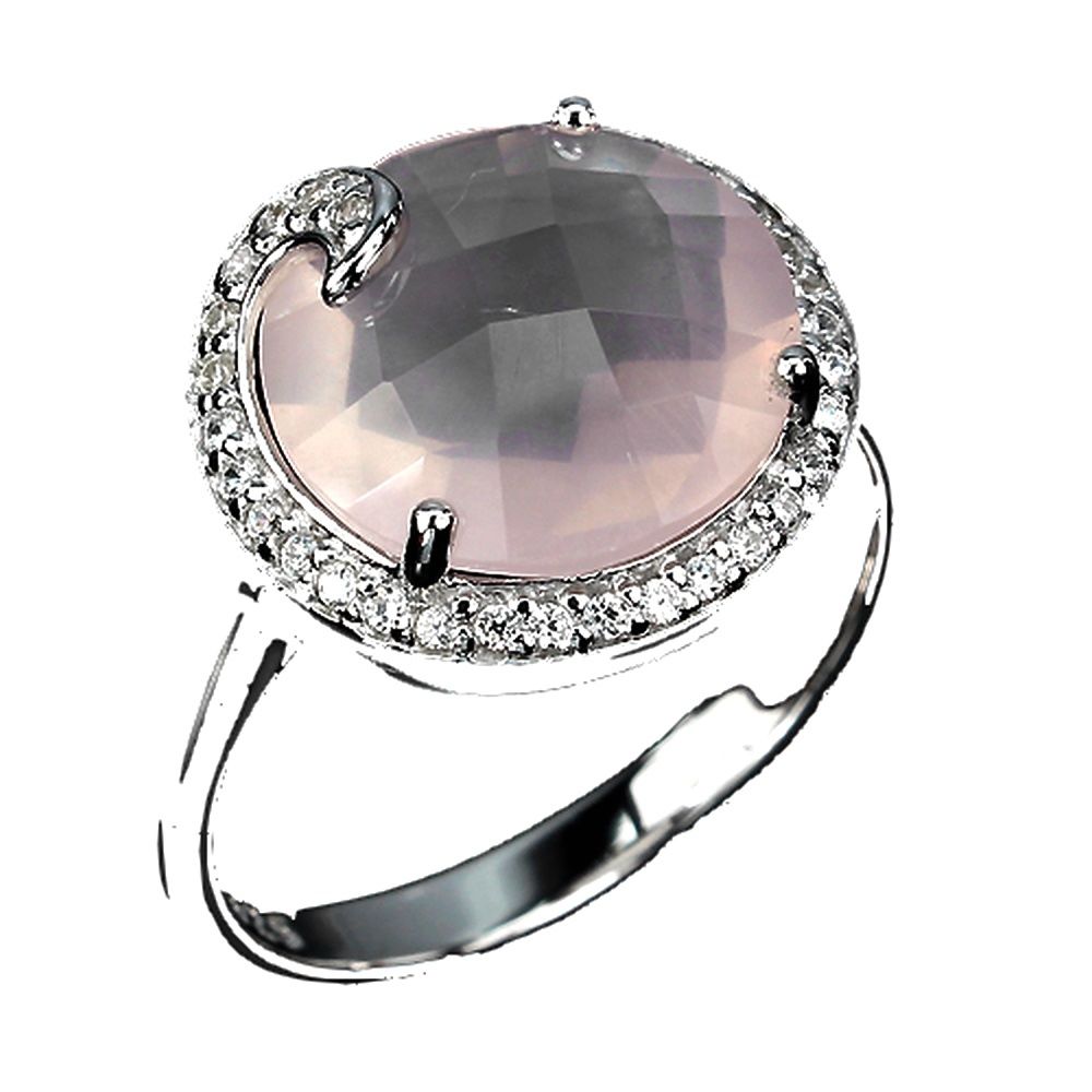 Gemstones Natural Pink Quartz , 12 mm origin Brazil & White cubic zirconia 1 mm