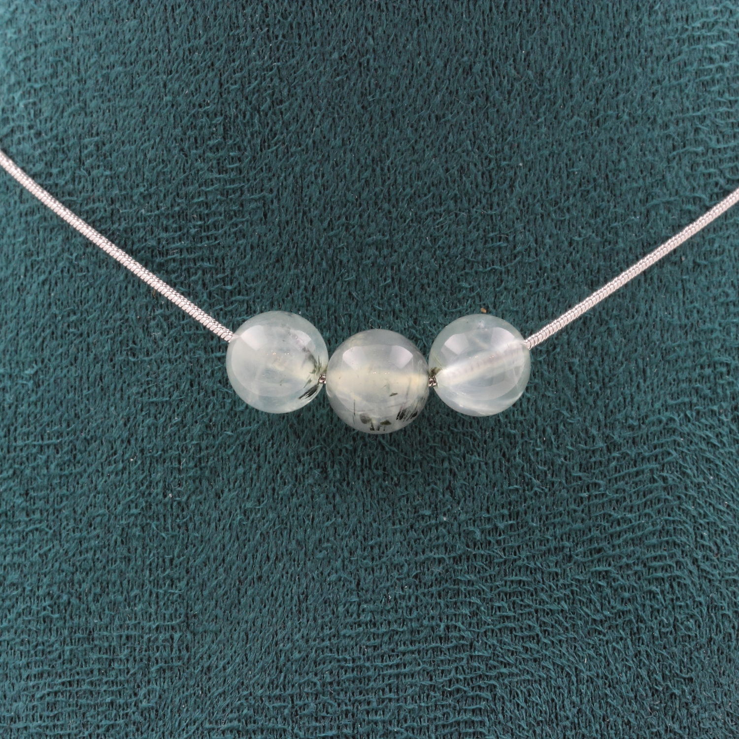 Prehnite from Africa 8 mm 3 beads necklace, stainless steel chain length 45 cm. We can make it to your length on request. Made in France in our A Bijoux workshop. Delivered in a box pouch. Necklace for women, men, children. Discover more than 1000 models of necklaces made by the A Bijoux brand with new arrivals every day.