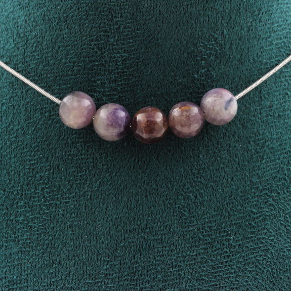 Purple Mica from Tanzania 8 mm 5 beads necklace, stainless steel chain length 45 cm. We can make it to your length on request. Made in France in our A Bijoux workshop. Delivered in a box pouch. Necklace for women, men, children. Discover more than 1000 models of necklaces made by the A Bijoux brand with new arrivals every day.