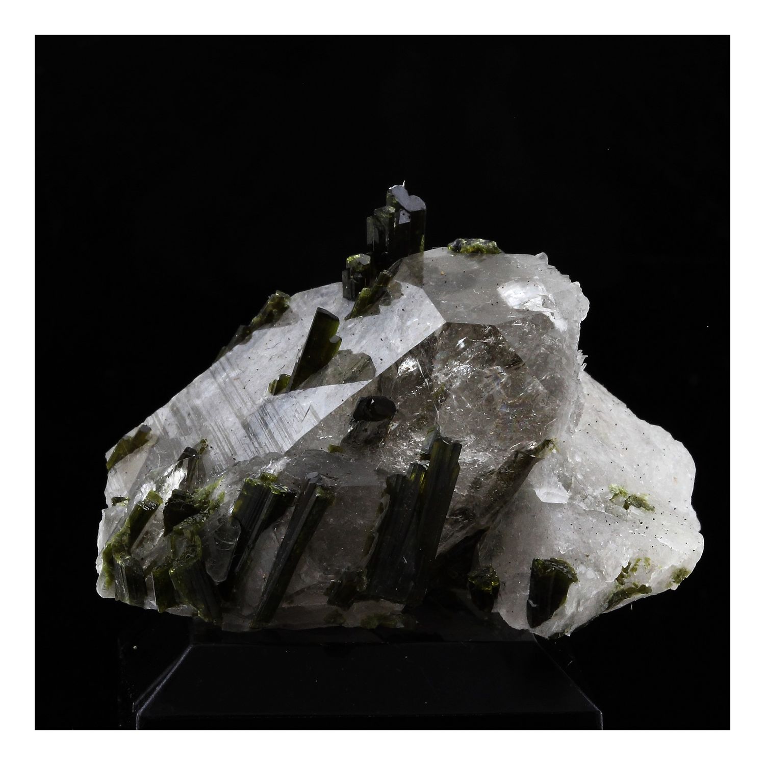 Quartz fumé + Epidote en provenance du Massif des Grandes Rousses, Isère, Auvergne-Rhône-Alpes, France.