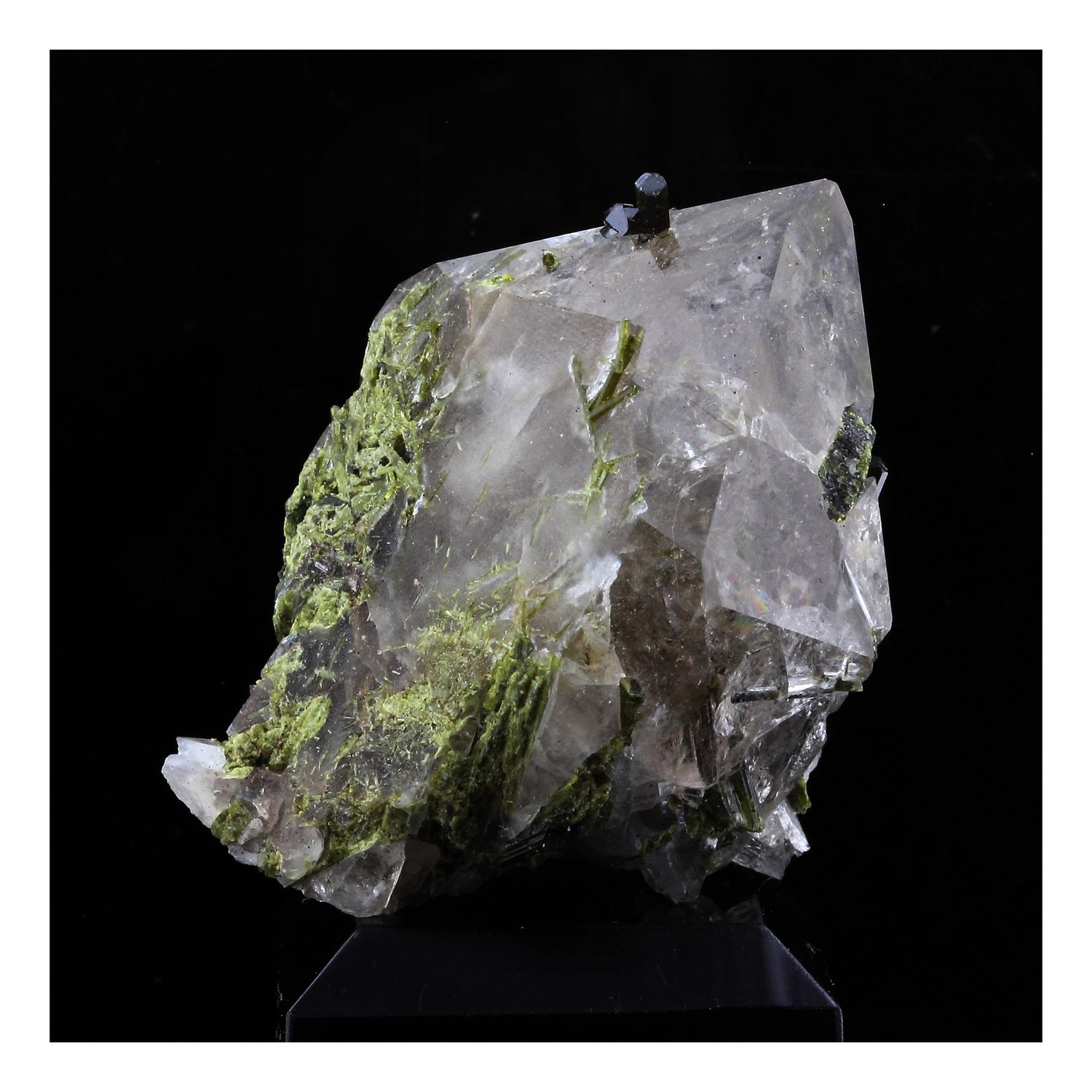 Quartz fumé + Epidote en provenance du Massif des Grandes Rousses, Isère, Auvergne-Rhône-Alpes, France.