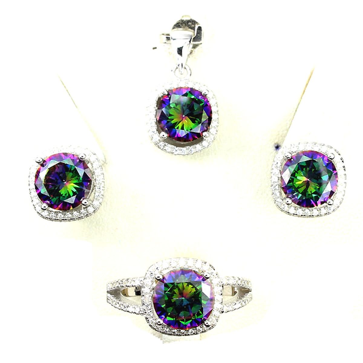 Rainbow Quartz Pendant, Ring, Earrings Set