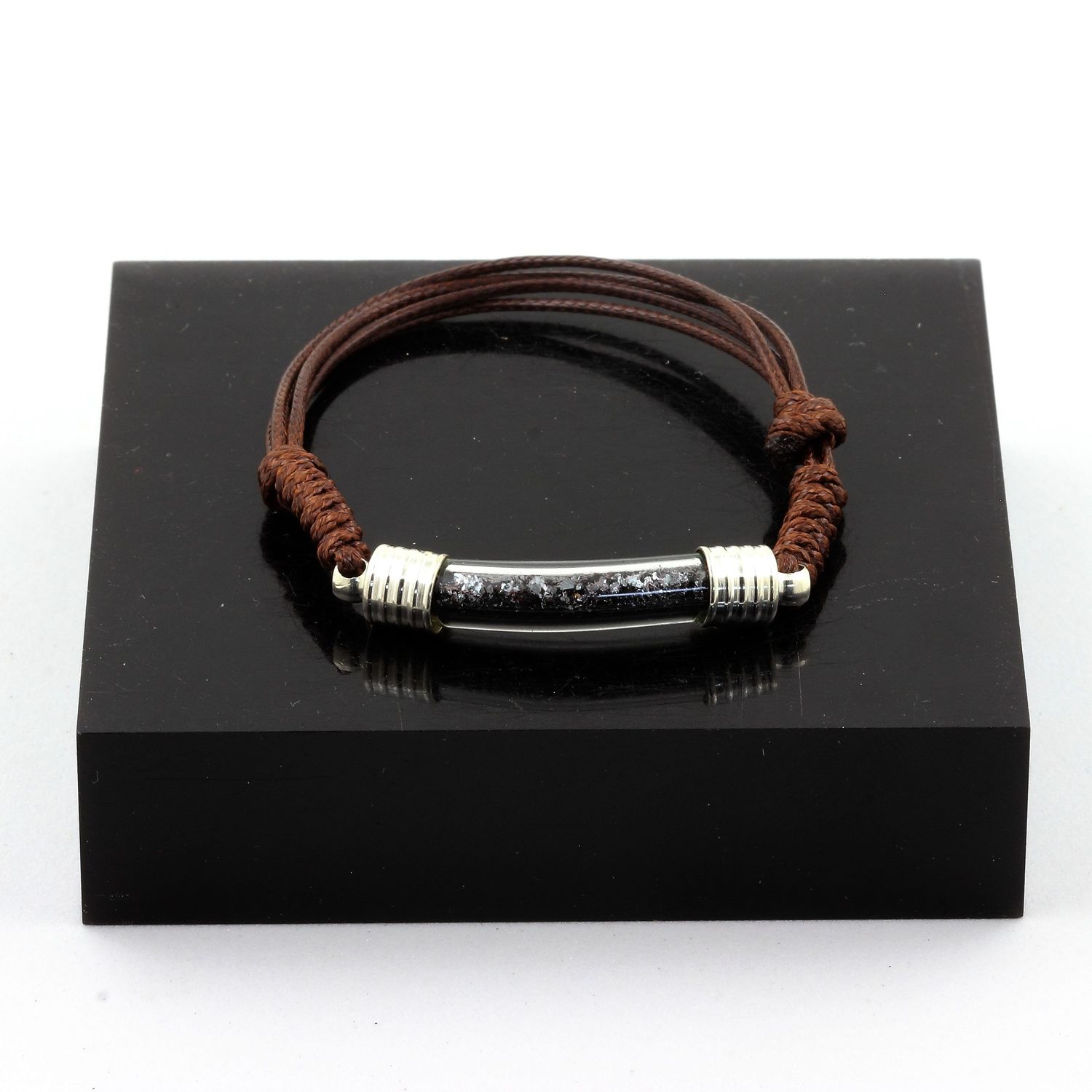 Dimensions: adjustable from 16 to 24 cm. Rope and glass bracelet (tube size 40 mm x 6 mm) with natural raw stones.