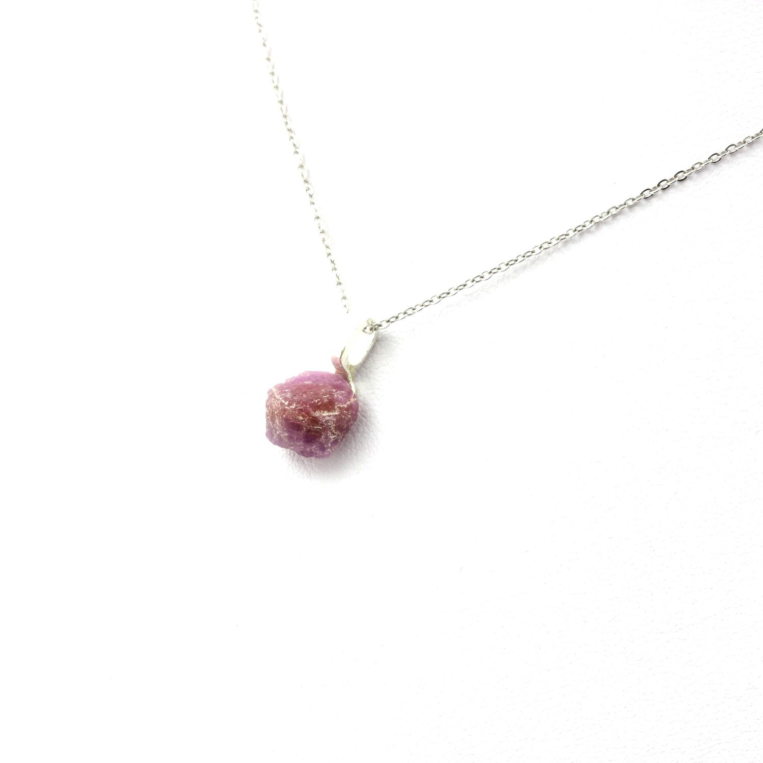 Raw Ruby Necklace + stainless steel chain length 40, 45, 50, 55, 60, 70, 80, 90 cm to choose from. Ruby from Kiteto District, Manyara Region, Tanzania