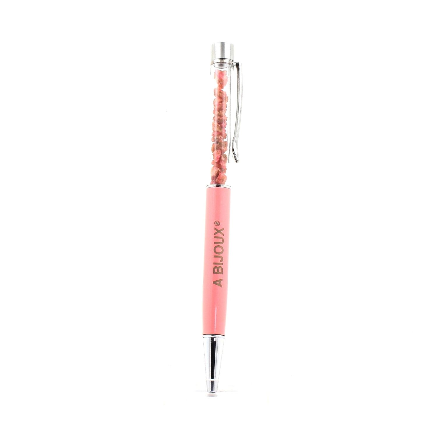 Natural Spinel crystal pen from Tanzania. Quantity of stones varies depending on size. Pen available in several colors in our store. Black ink. Refillable pen. Delivered in a gift bag.