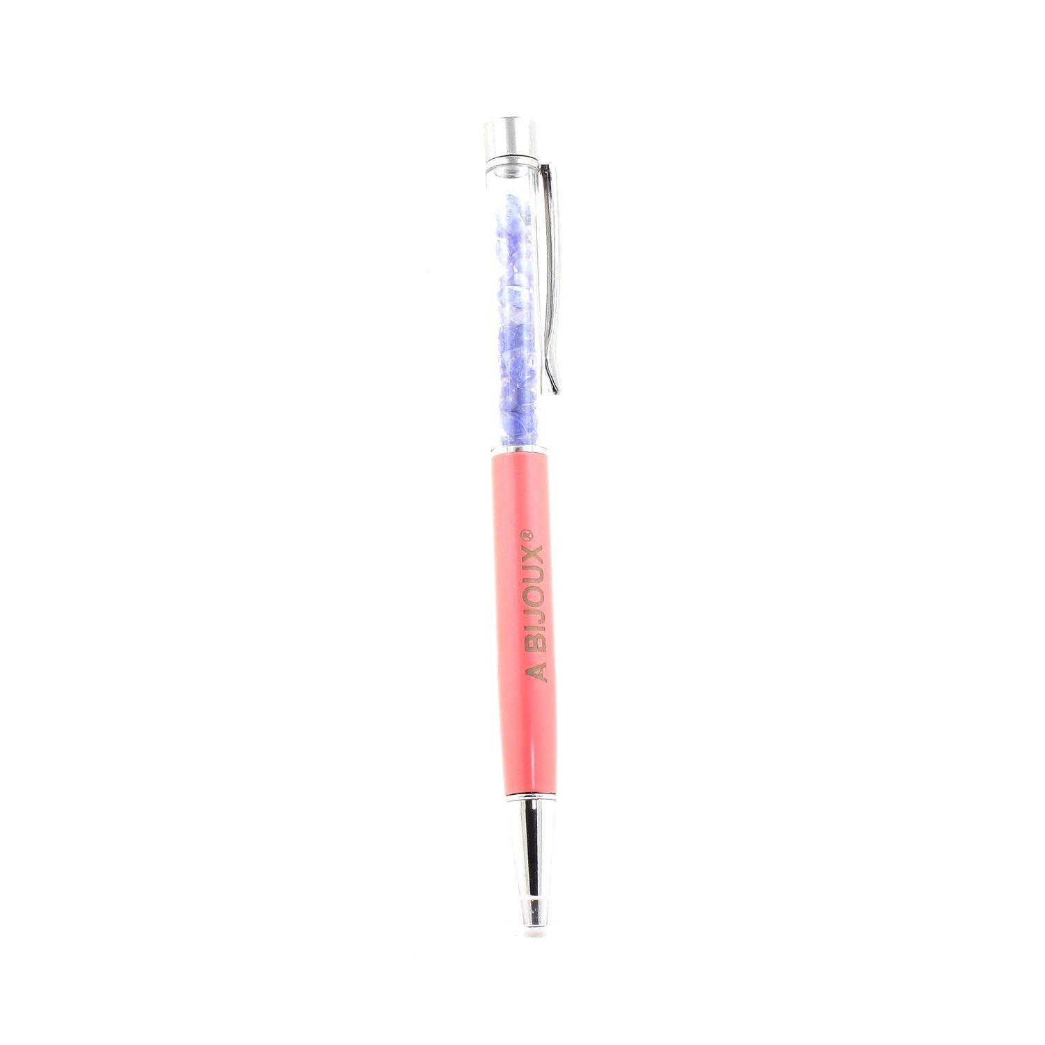 Natural Tanzanite crystal pen from Merelani Hills (Mererani), Lelatema Mts, Arusha, Tanzania. Quantity of stones varies depending on size. Pen available in several colors in our store. Black ink. Refillable pen. Delivered in a gift bag.