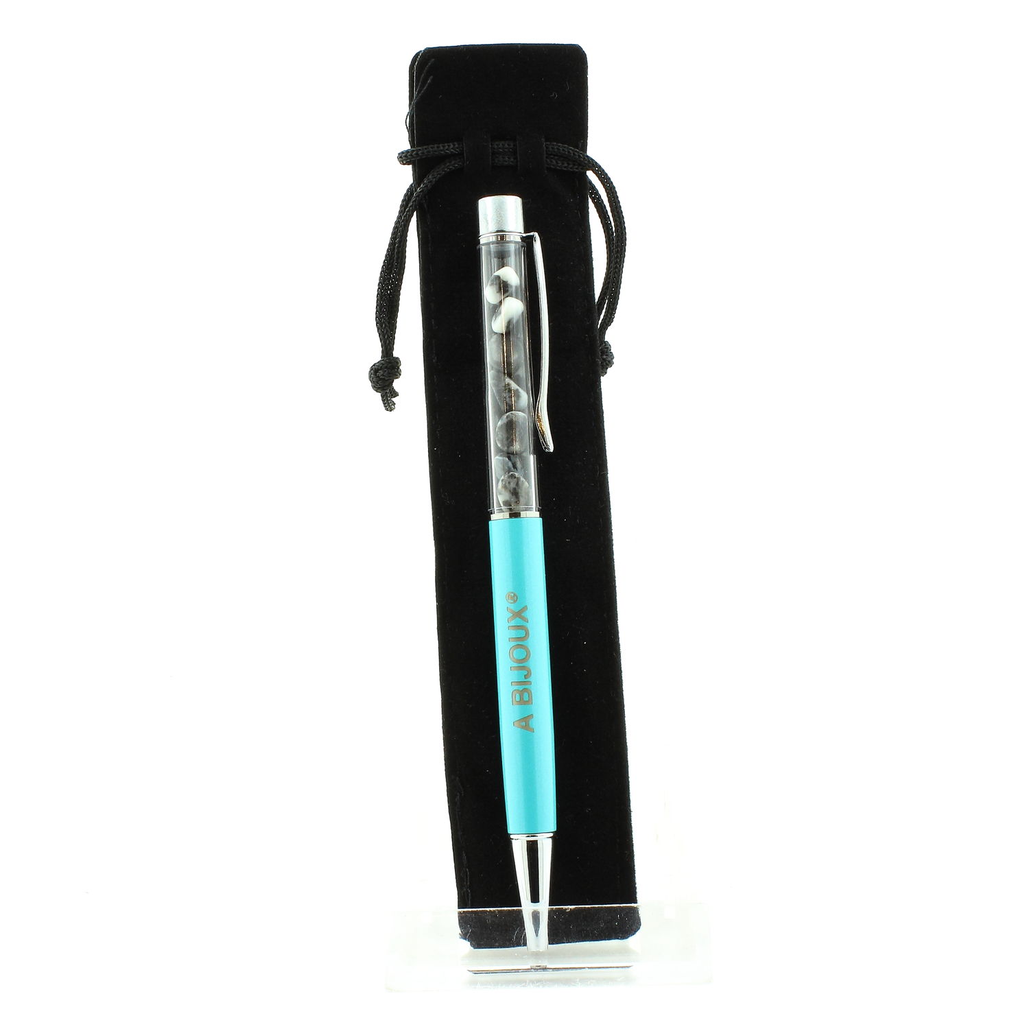 Natural Zebra jasper mineral pen from Brazil. Pen available in several colors in our store. Black or blue ink of your choice. Refillable pen (with 2 free refills). Delivered in a gift bag.