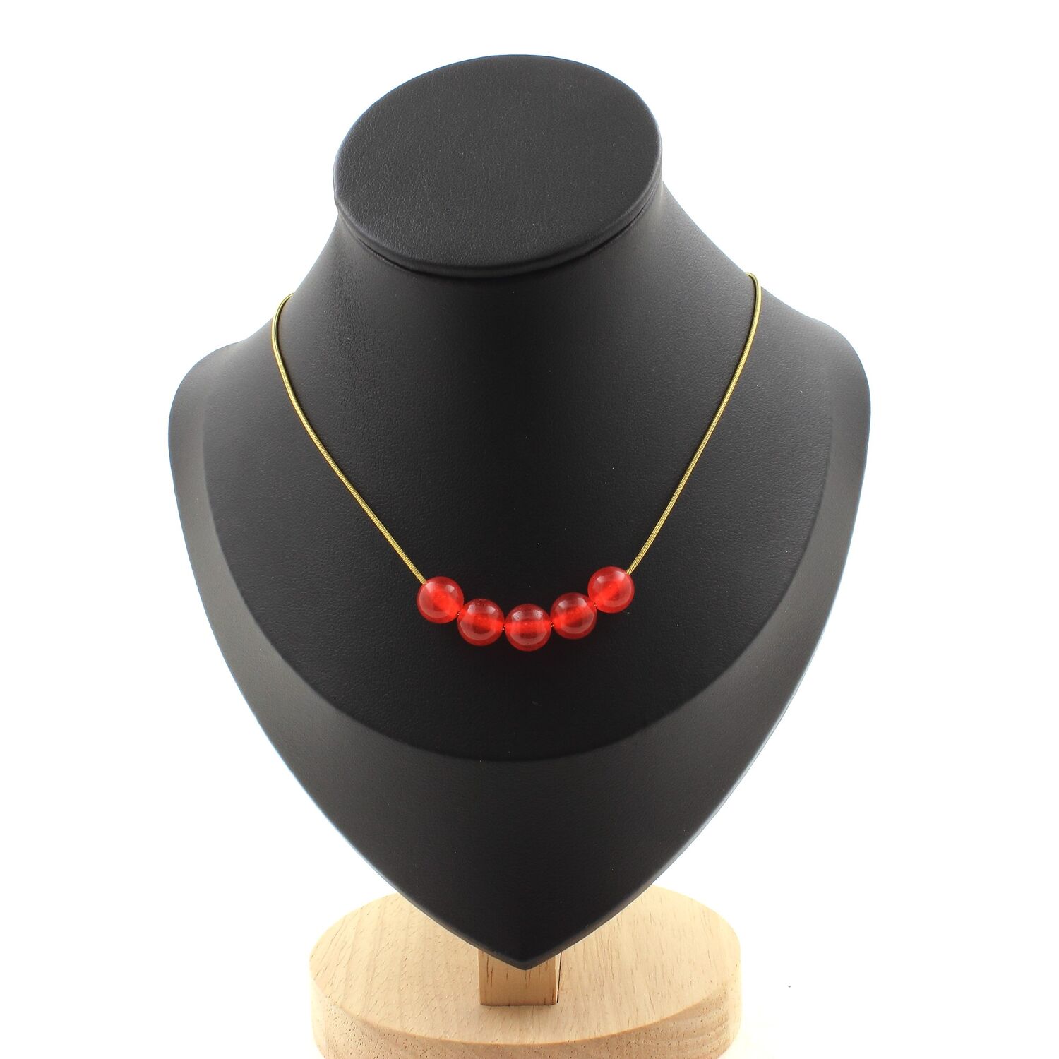 Red Chalcedony 5 beads 8 mm necklace, golden stainless steel chain length 45 cm. We can make it to your length on request. Made in France in our A Bijoux workshop. Delivered in a box pouch. Necklace for women, men, children. Discover more than 1000 models of necklaces made by the A Bijoux brand with new arrivals every day.