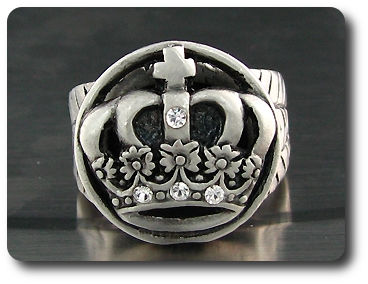 Rotating Titanium King Queen Crown White Topaz Men Ring