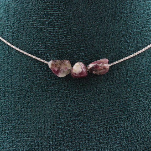 Rubellite Tourmaline from Brazil 3 beads necklace, stainless steel chain length 45 cm. We can make it to your length on request. Made in France in our A Bijoux workshop. Delivered in a box pouch. Necklace for women, men, children. Discover more than 1000 models of necklaces made by the A Bijoux brand with new arrivals every day.