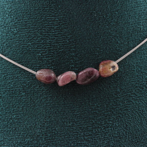 Rubellite Tourmaline from Brazil 4 beads necklace, stainless steel chain length 45 cm. We can make it to your length on request. Made in France in our A Bijoux workshop. Delivered in a box pouch. Necklace for women, men, children. Discover more than 1000 models of necklaces made by the A Bijoux brand with new arrivals every day.