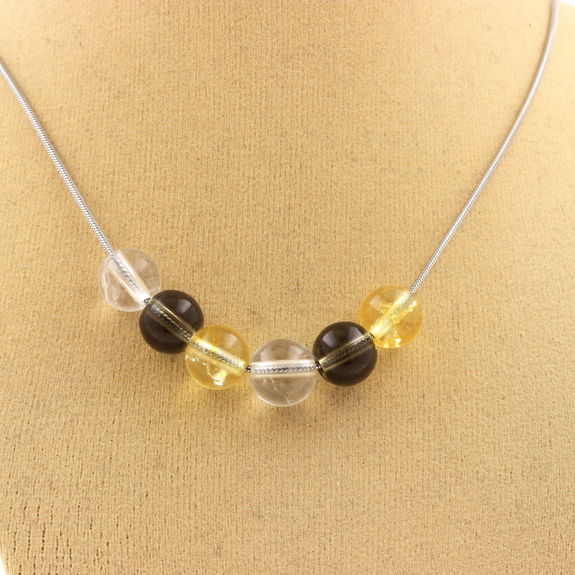 Smoky Quartz + Citrine + Quartz 8 mm beaded necklace, stainless steel chain length 45 cm. We can make it to your length on request. Made in France in our A Bijoux workshop. Delivered in a box pouch. Necklace for women, men, children. Discover more than 1000 models of necklaces made by the A Bijoux brand with new arrivals every day.