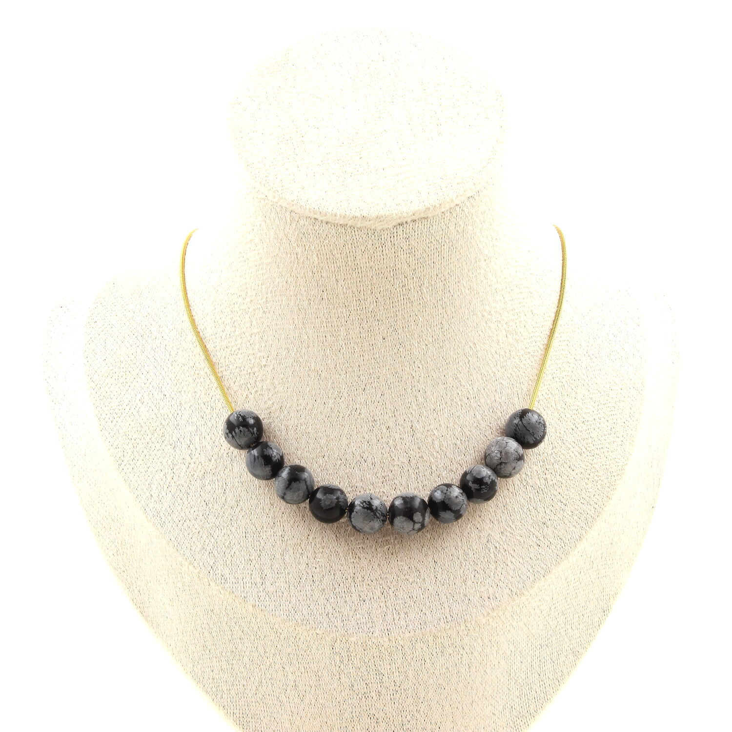 Snowflake Obsidian 8 mm 10 beads necklace. Golden stainless steel chain