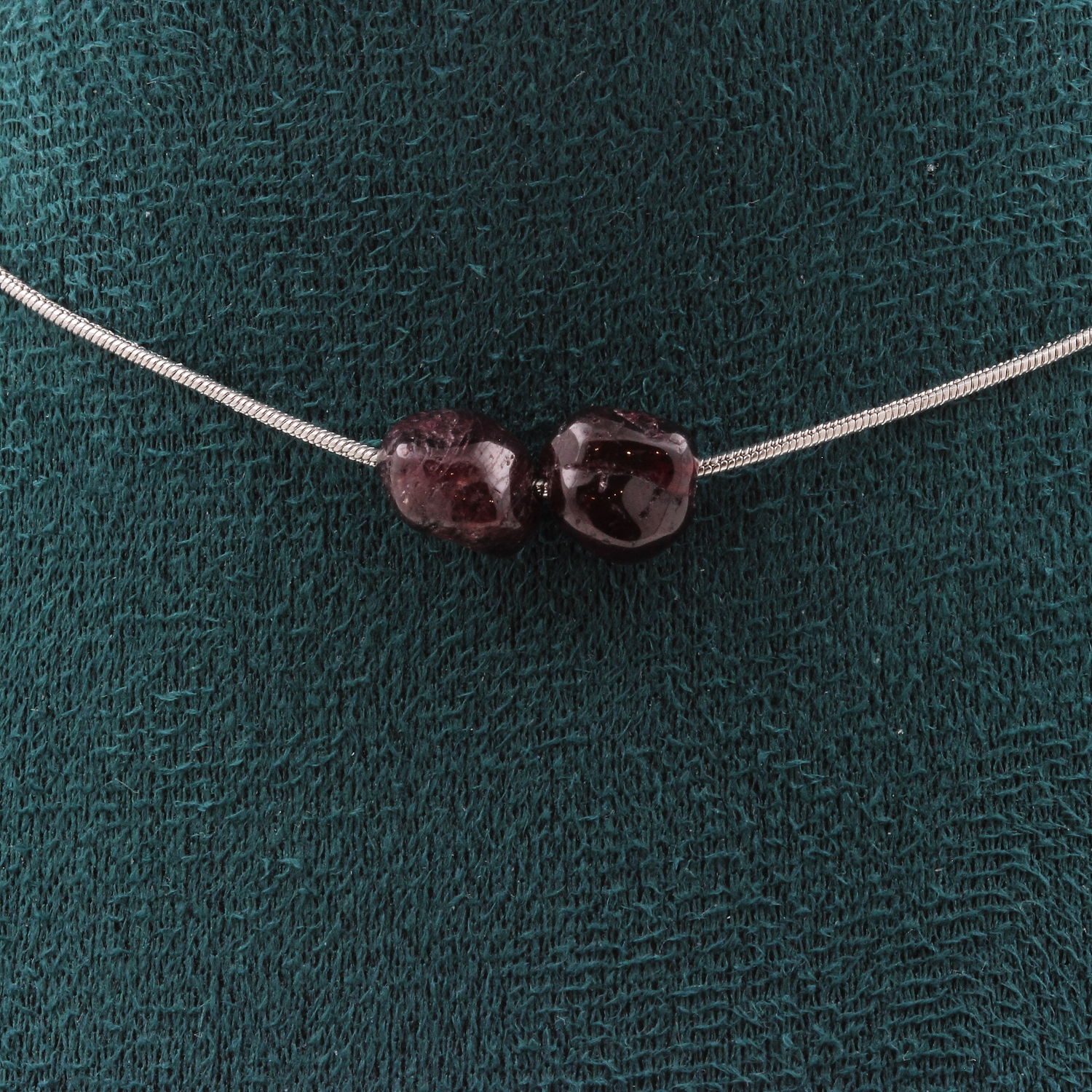 Spessartite Garnet from Mozambique 2 beads necklace, stainless steel chain length 45 cm. We can make it to your length on request. Made in France in our A Bijoux workshop. Delivered in a box pouch. Necklace for women, men, children.