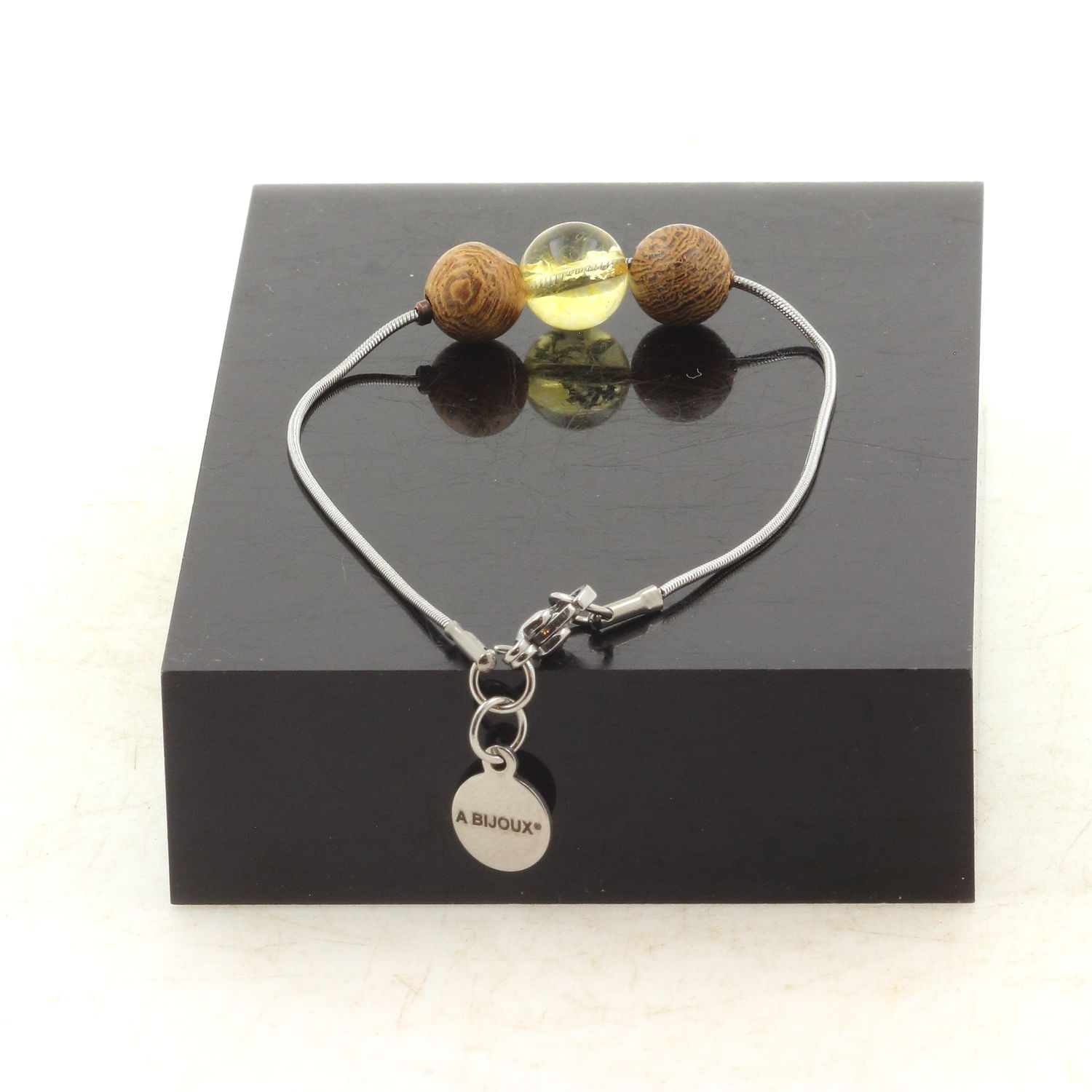 Stainless steel bracelet 1 Citrine + wood 8 mm Bead.