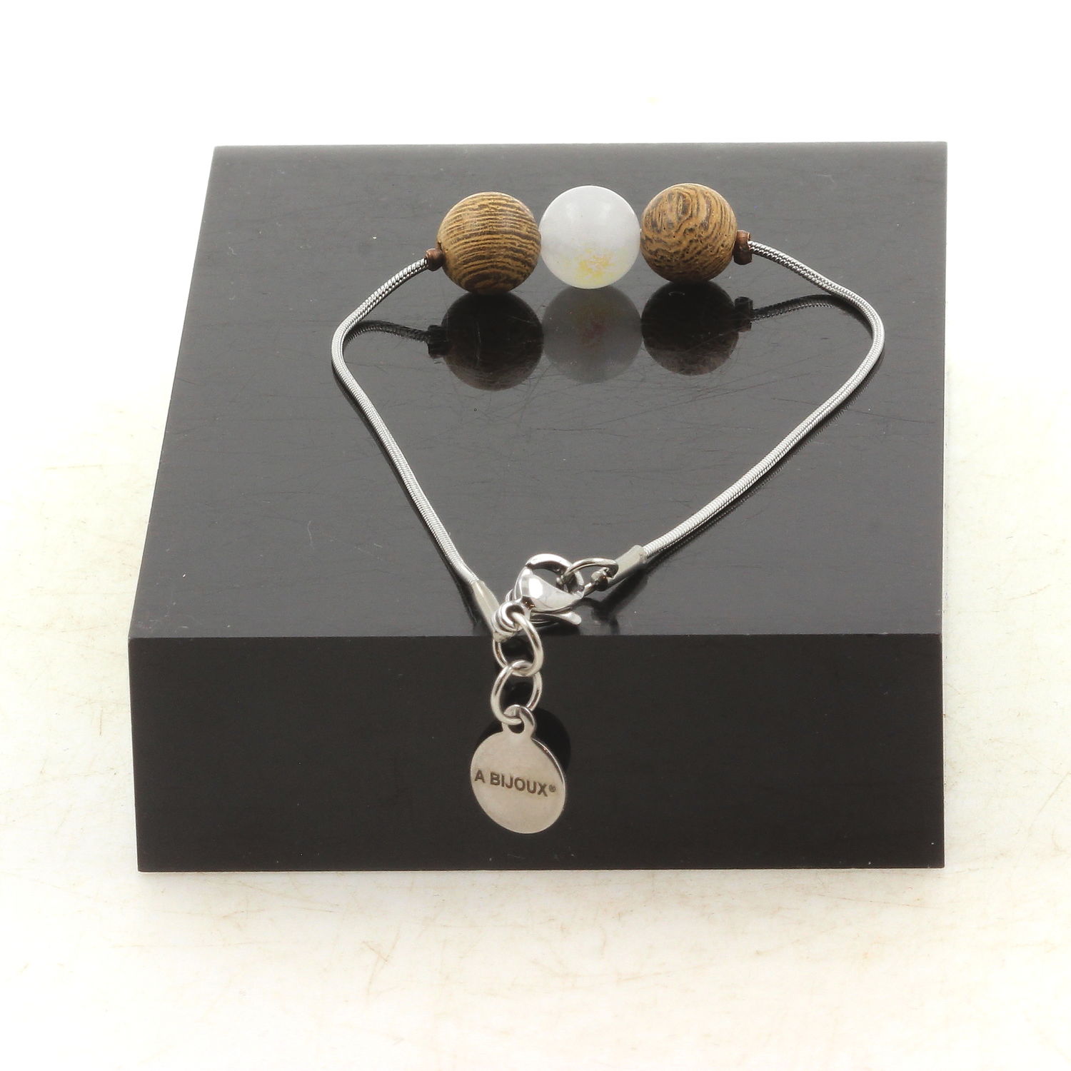 Stainless steel bracelet 1 Moonstone + wood 8 mm Bead.