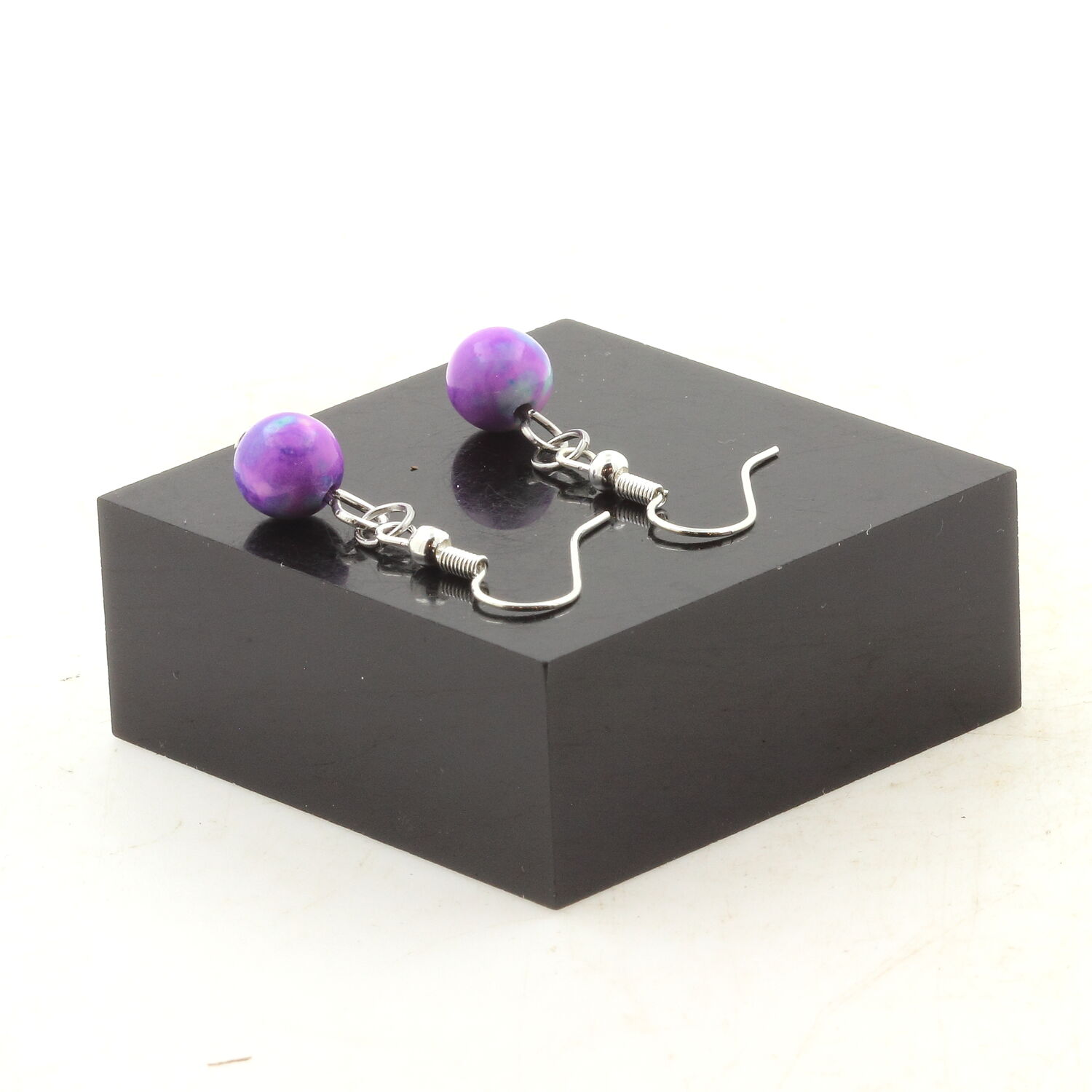 Stainless steel hypoallergenic Earrings Blue purple Jasper 8 mm 1 Bead.