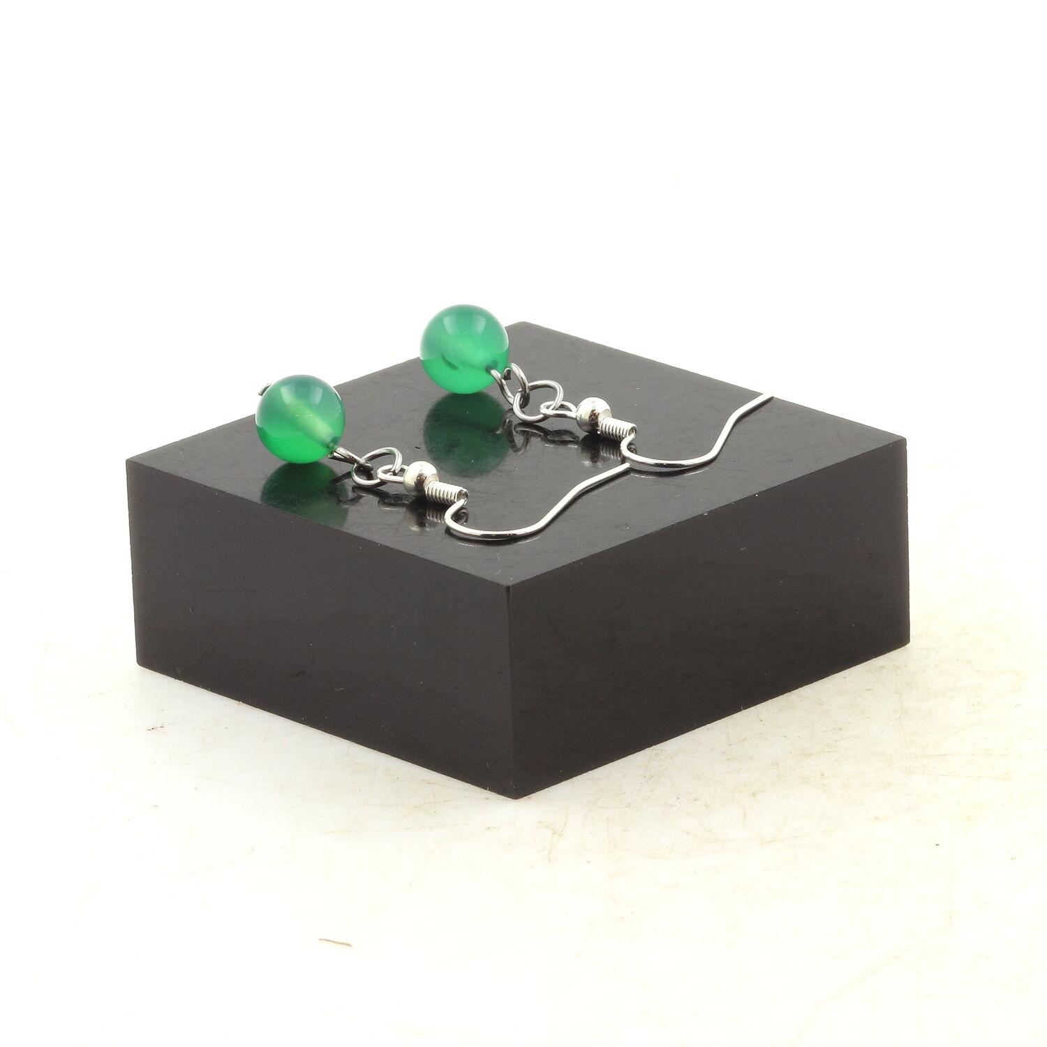 Stainless steel hypoallergenic Earrings Green Agate 8 mm 1 Bead.