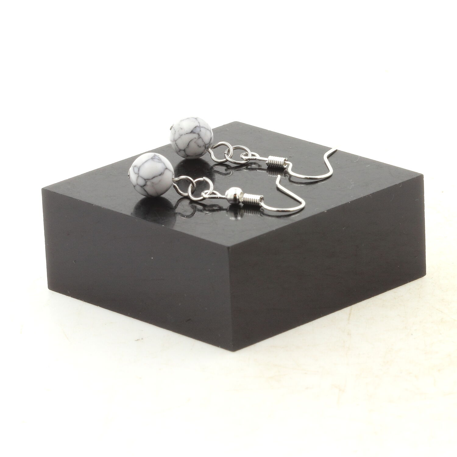 Stainless steel hypoallergenic Earrings Howlite 8 mm 1 Bead.