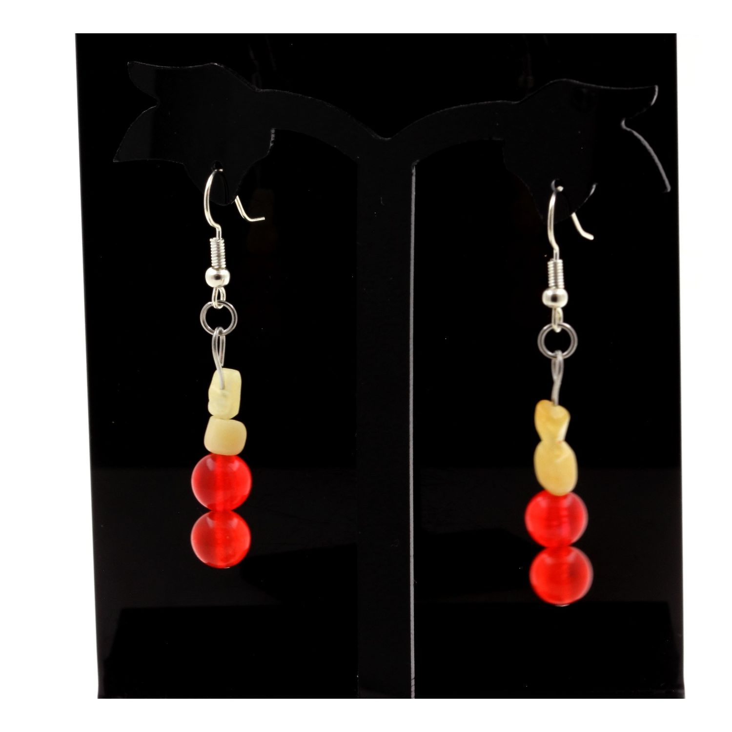 Stainless steel hypoallergenic Earrings Yellow calcite from the UK Freeform 5mm-8mm + Red Chalcedony 8 mm 4 Beads.