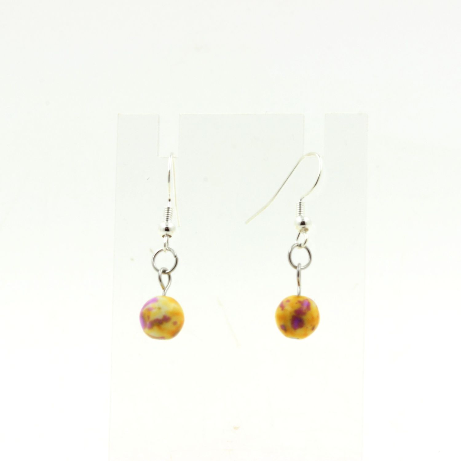 Stainless steel hypoallergenic Earrings Yellow-purple Jasper 8 mm 1 Bead.