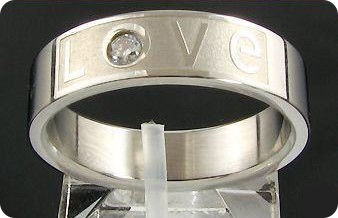 Stainless Steel Round Brilliant Cut Metal Created Diamond Ring