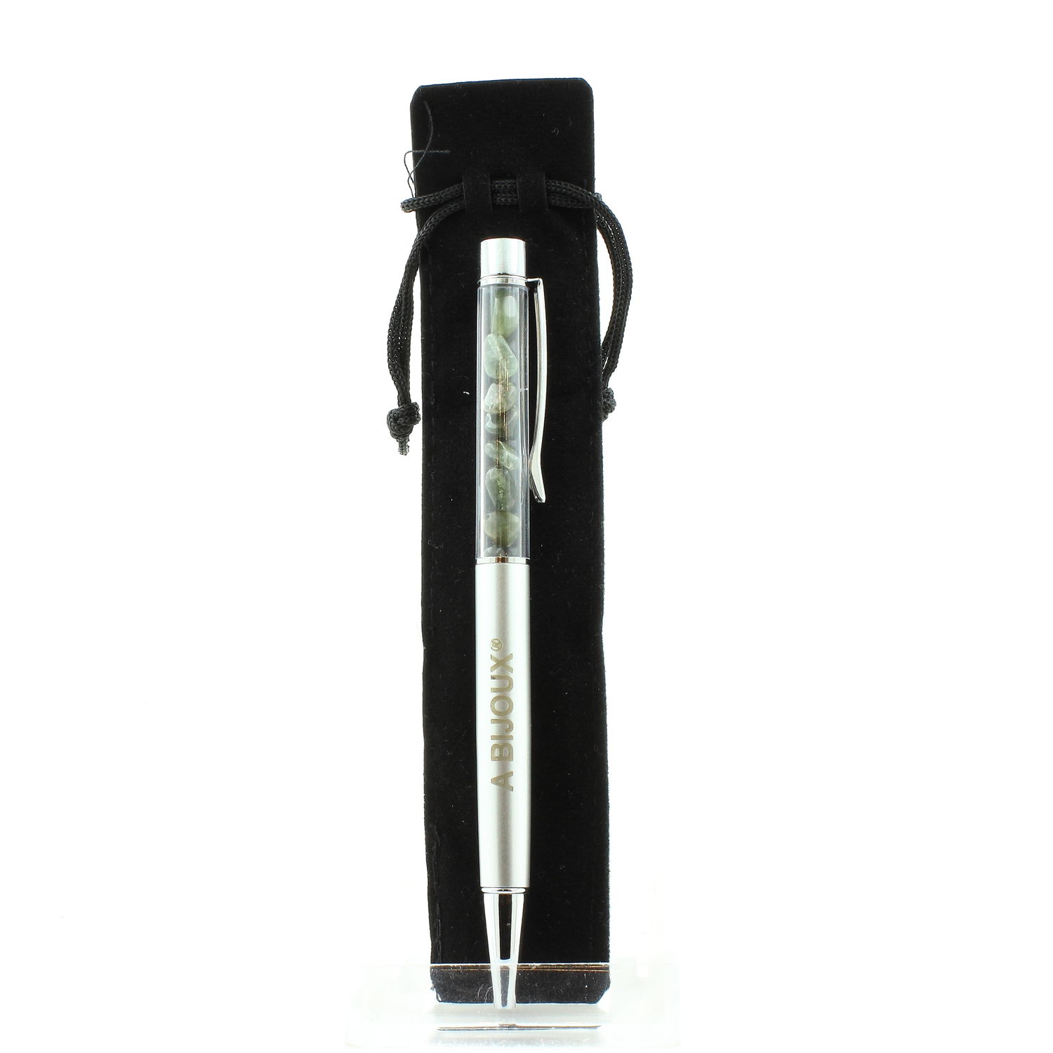 Stylo minéraux Quartz Tourmaline rutile en provenance du Brésil. Stylo disponible en plusieurs couleurs dans notre boutique. Encre de couleur noir ou bleu au choix. Stylo rechargeable (avec 2 recharges offertes). Livré dans une pochette cadeau.