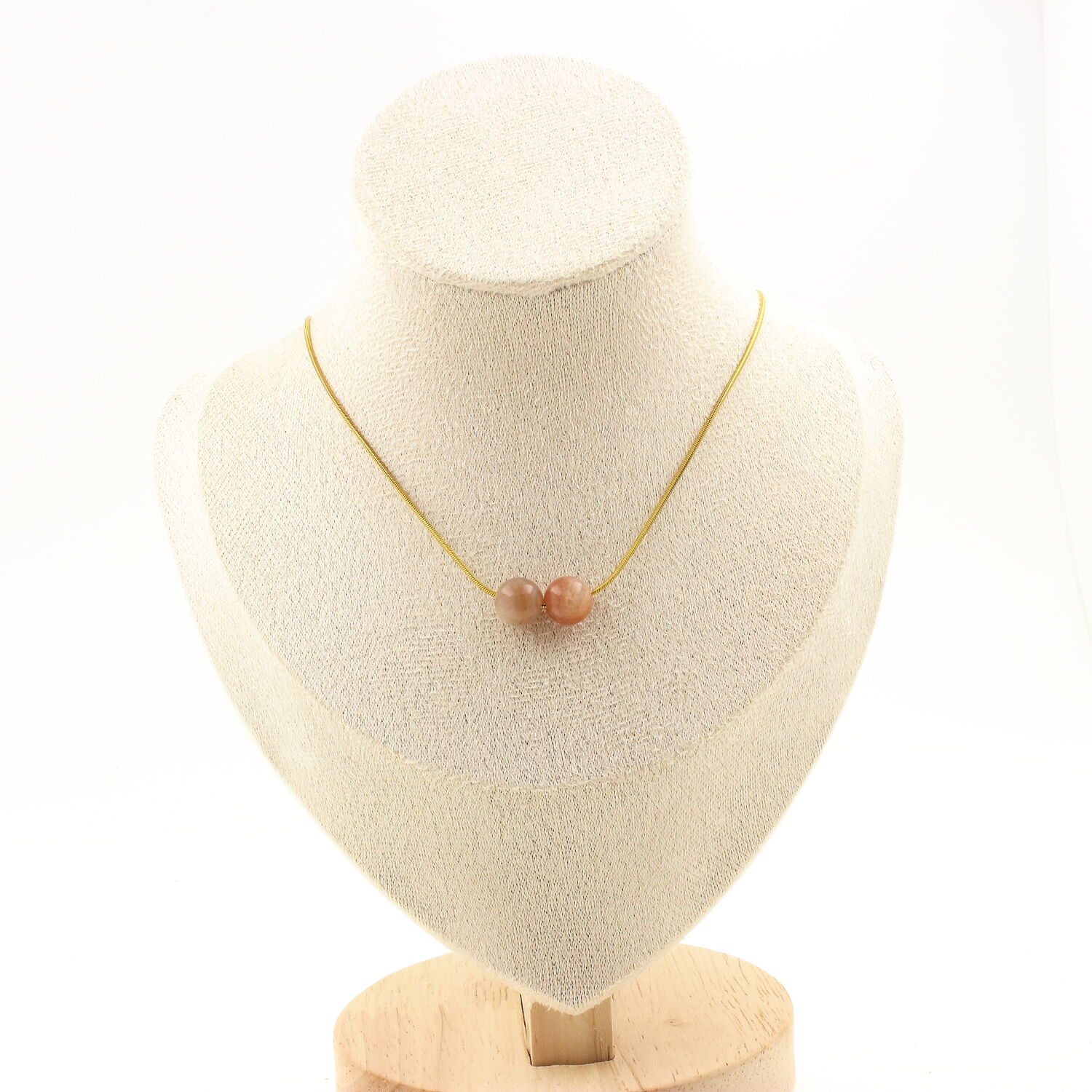 Sunstone 8 mm 2 beads necklace, golden stainless steel chain length 45 cm. We can make it to your length on request. Made in France in our A Bijoux workshop. Delivered in a box pouch. Necklace for women, men, children. Discover more than 1000 models of necklaces made by the A Bijoux brand with new arrivals every day.