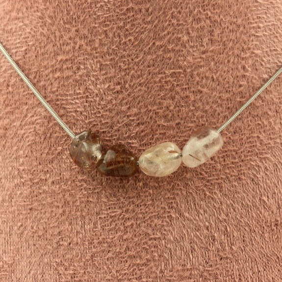 Super Seven (Melody's Stone) from Brazil 4 beads necklace, stainless steel chain length 45 cm. We can make it to your length on request. Made in France in our A Bijoux workshop. Delivered in a box pouch. Necklace for women, men, children. Discover more than 1000 models of necklaces made by the A Bijoux brand with new arrivals every day.