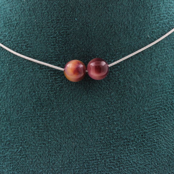 Two-tone Purple Tiger's Eye 8 mm 2 beads necklace, stainless steel chain length 45 cm. We can make it to your length on request. Made in France in our A Bijoux workshop. Delivered in a box pouch. Necklace for women, men, children. Discover more than 1000 models of necklaces made by the A Bijoux brand with new arrivals every day.