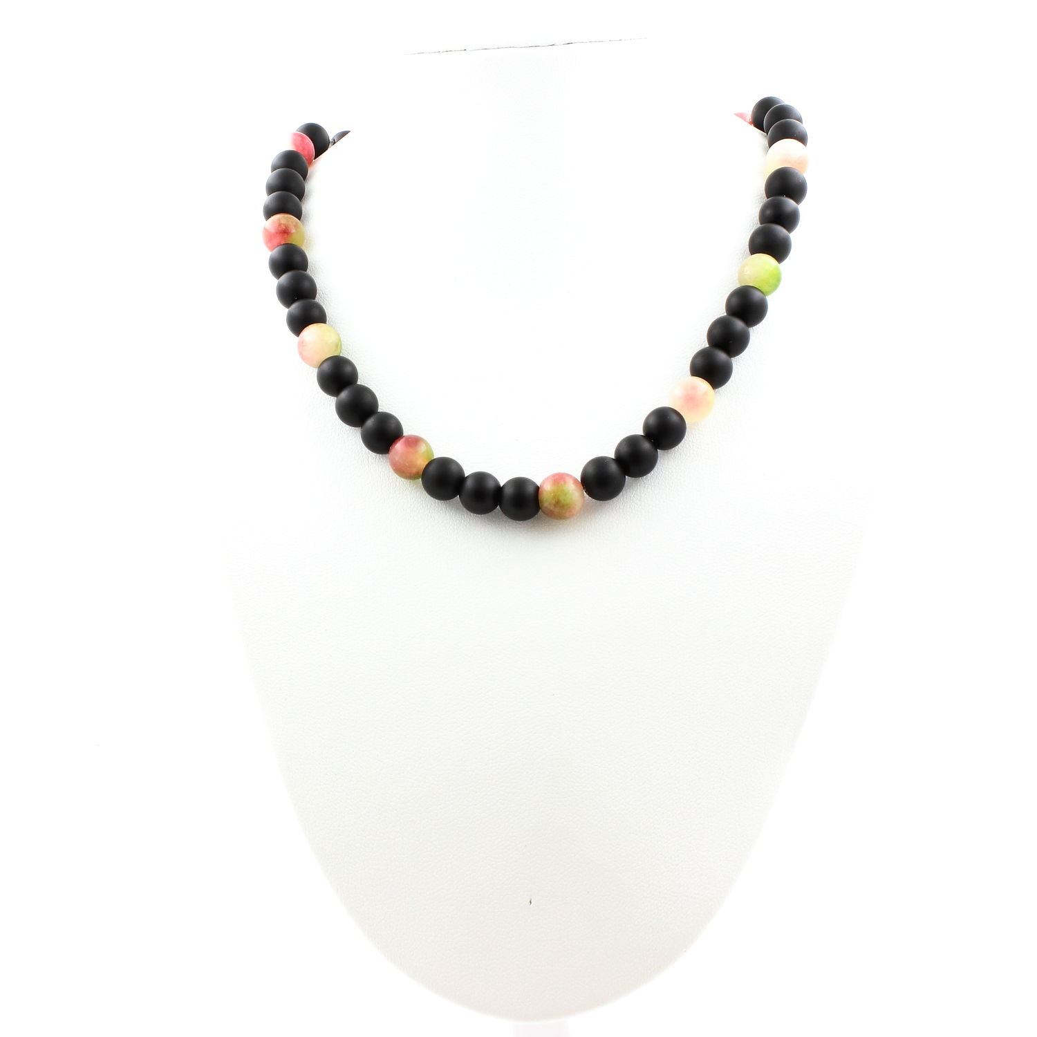 Watermelon Tourmaline + Matte Black Onyx 8 mm beaded necklace